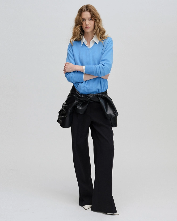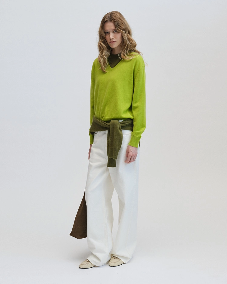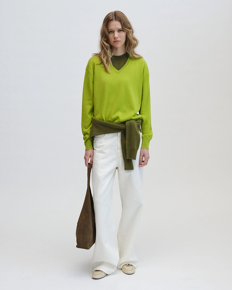 Standard V Neck Sweater in cashmere & wool_Apple green