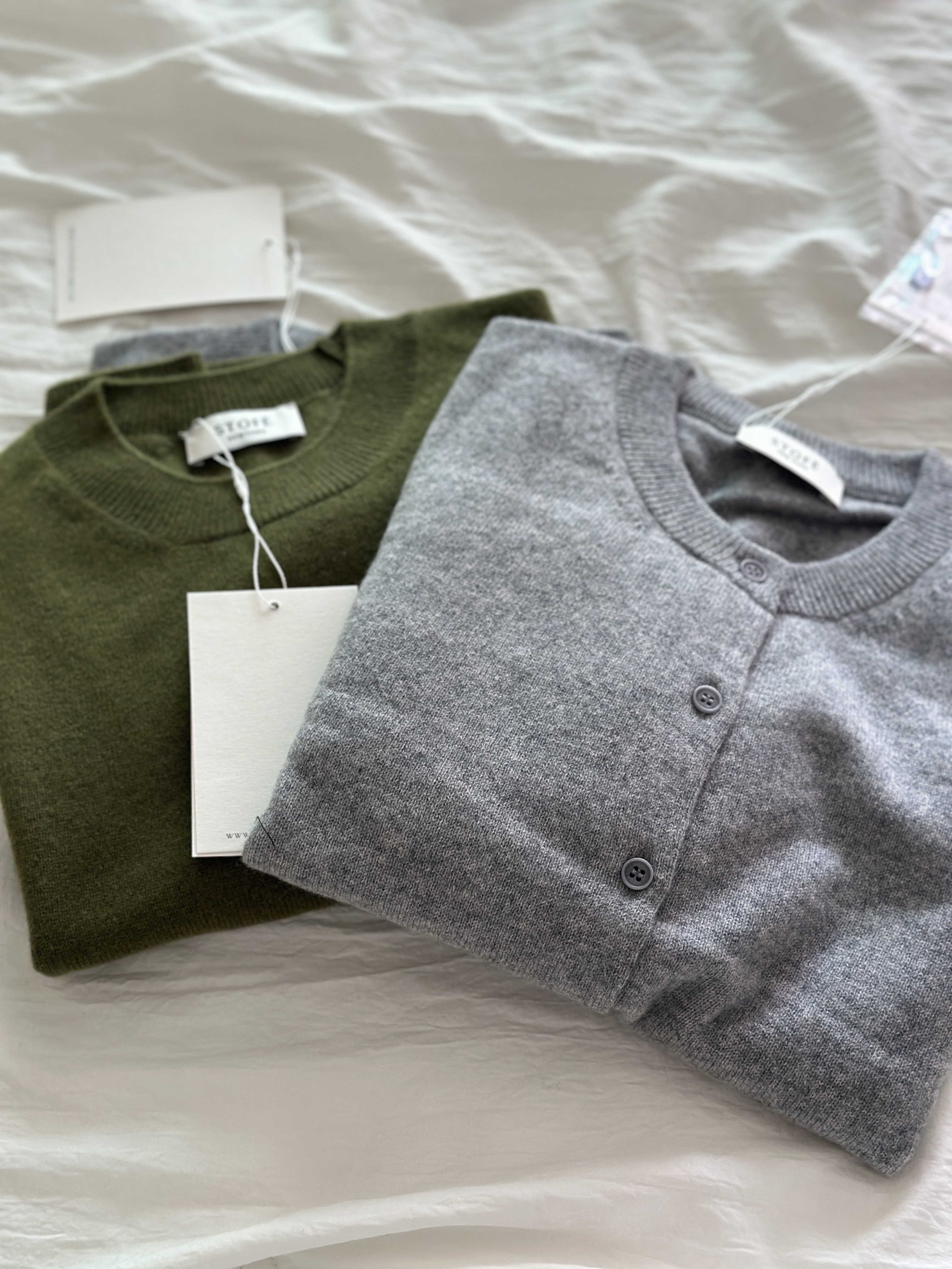 [Options] 교환환불 : 니트상품은 교환환불이 불가하며, 부득이하게 반품시 스토어크레딧으로 환불됩니다. / 크루넥 스웨터 : 스웨터_헤더그레이 / 가디건 추가 선택 : 선택안함 / 1개
