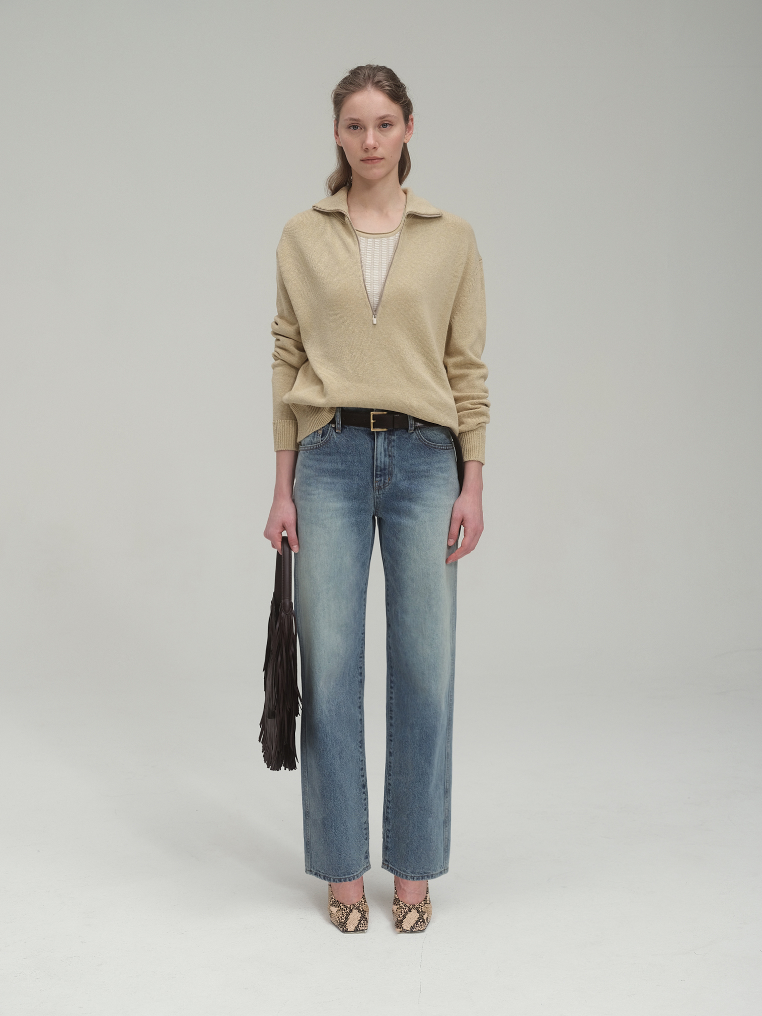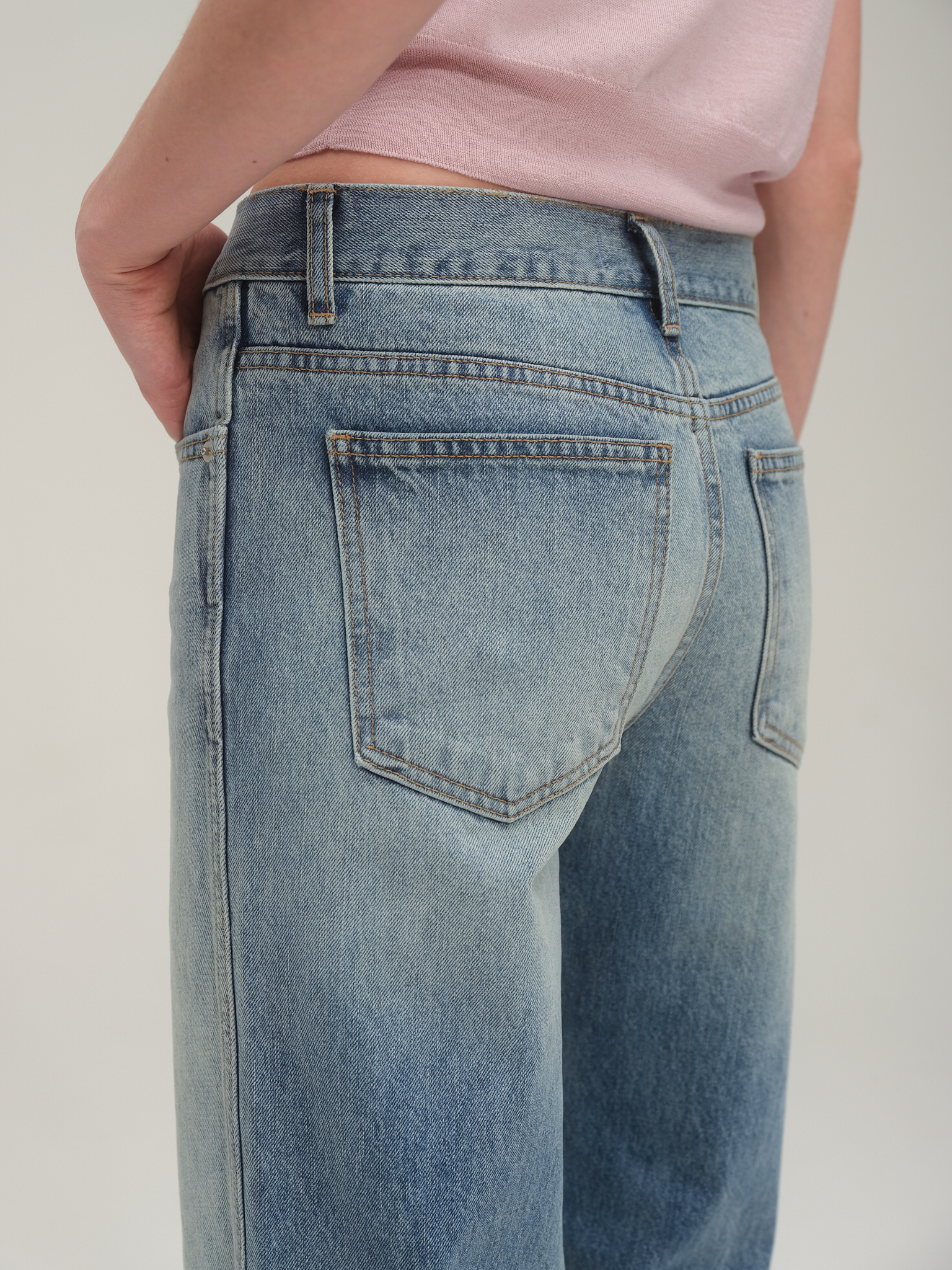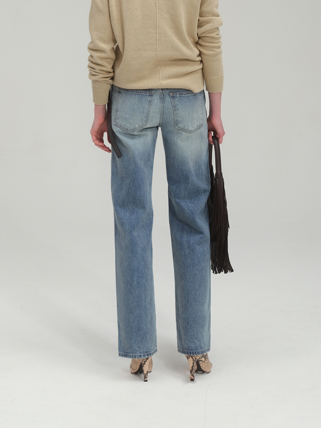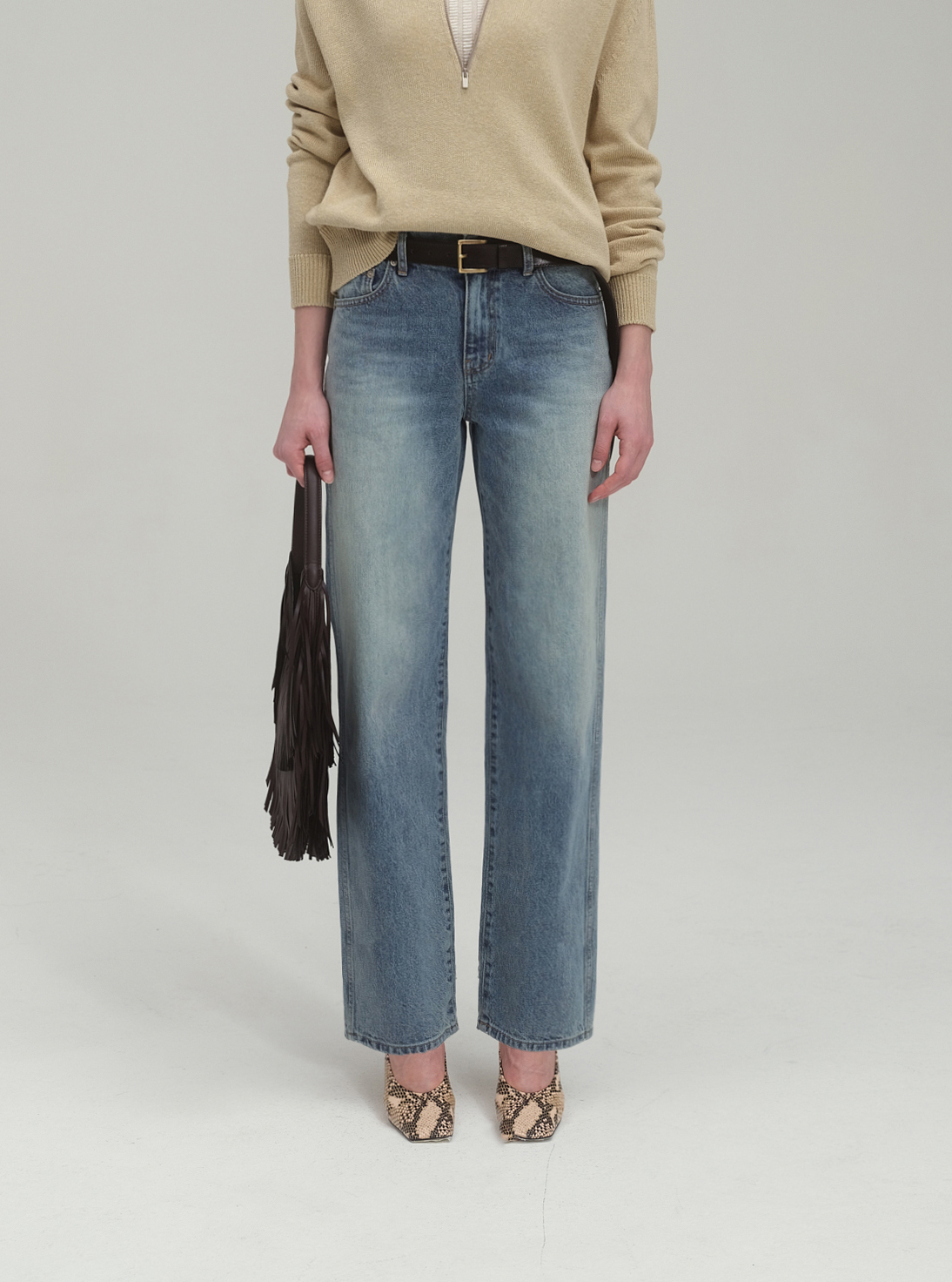 [New Color] Straight Fit Cotton Denim in Medium BlueTIME SALE